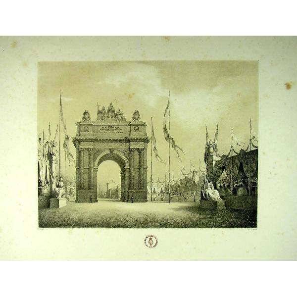 Bologna 1857. Arco eretto per l'ingresso di Pio IX, 9 Giugno