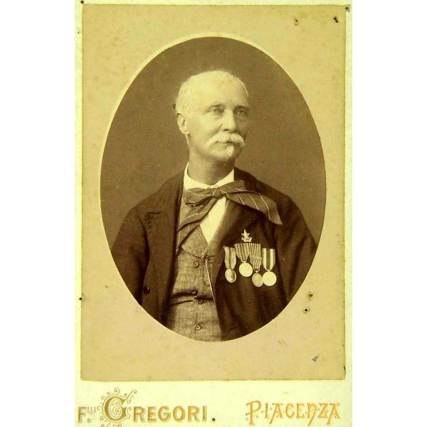 Veterano Guerre Risorgimentali 1848-1870. Fotografia ritoccata a mano nei capelli e nei baffi