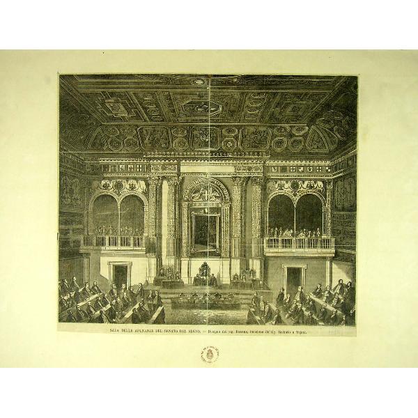 Sala delle adunanze del Senato del Regno Cfr. 8(98). Ritaglio di giornale