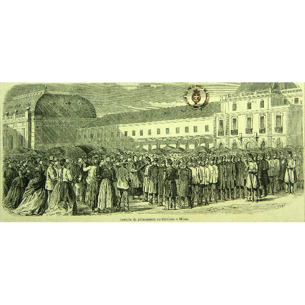 Arrivèe de prisonners autrichiens à Milan Parte di serie: 'Terza guerra d' Indipendenza' da 9a(1) a 9a(90). Ritaglio di giornale