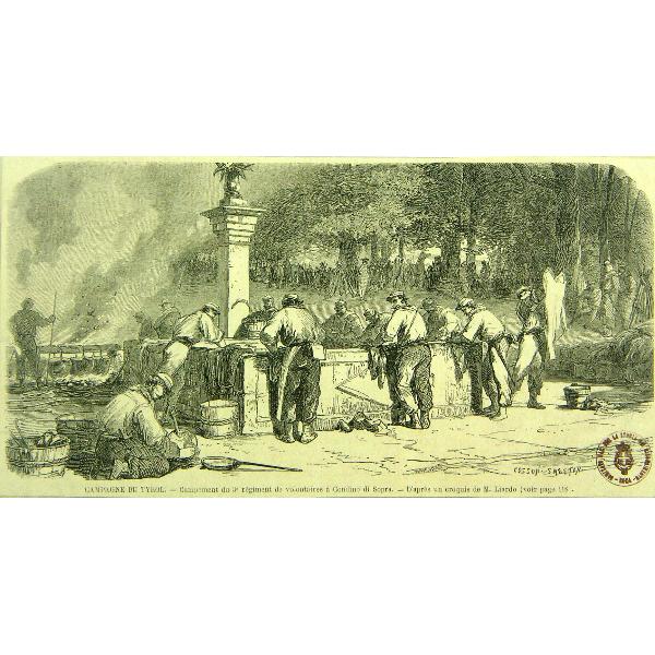 Campagne du Tirol. campement du 3° Parte di serie: 'Terza guerra d' Indipendenza' da 9a(1) a 9a(90). Ritaglio di giornale