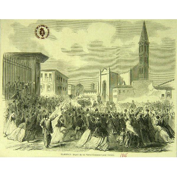 Florence: Depart du Roi Victor Emanuel pour l'armèe Parte di serie: 'Terza guerra d' Indipendenza' da 9a(1) a 9a(90). Ritaglio di giornale