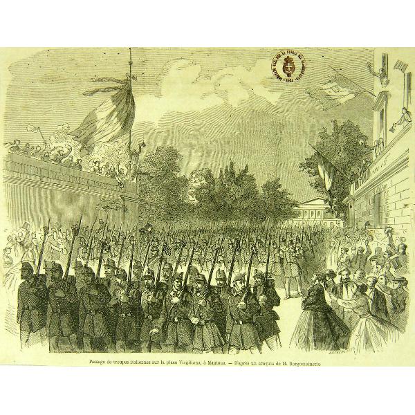Passage de troupes italiennes sur la place Virgiliana à Mantoue