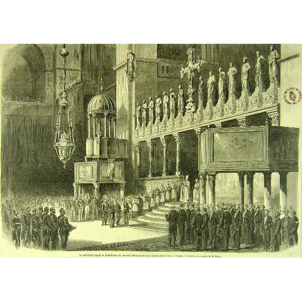 Le Roi d'Italie recoit la bènediction du Cardinal Trevisanato dans l'eglise Saint Marc, à Venise