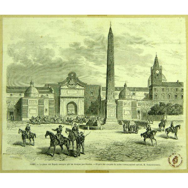 Rome. La place del Popolo occupèe par les troupes pontificale