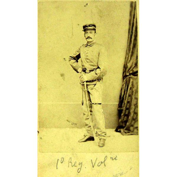 a) 1° Reggimento Volontari, b) All'amico Celi ricordo di Pietro Crespi, b) Pietro Crespi di Como sottotenente nel 1° Reggimento Volontari Crespi indossa uniforme e kepì rossi
