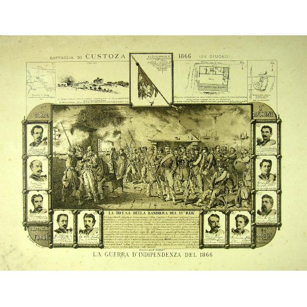 La difesa della bandiera del 44° Reggimento Data incisione: 1878Parte di serie: 'Battaglia di Custoza' da 9b(22) a 9b(28). Con legenda