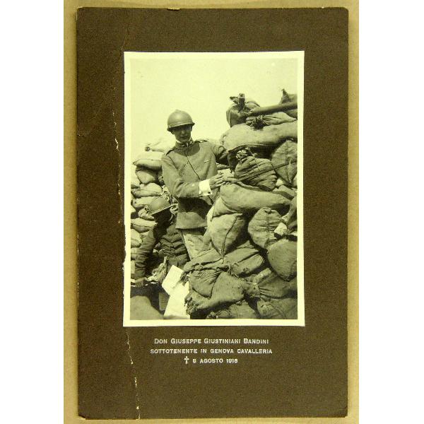 Don Giuseppe Giustiniani Bandini sottotenente in Genova Cavalleria morto l'8 agosto 1916 Necrologio, la dicitura è stampata in argento sul cartoncino passe-partout.Giustiniani è fotografato, ancora vivo, in trincea