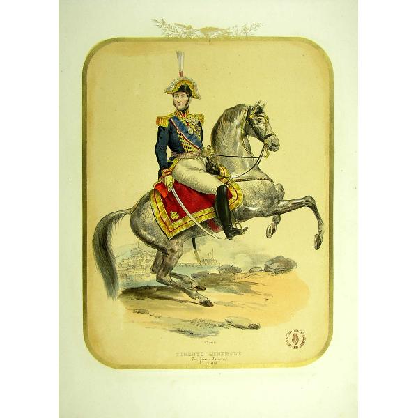 Tenente Generale Data incisione: 1850Parte di serie: 'Uniformi' da 11(1) a 11(95). Acquerellata a mano