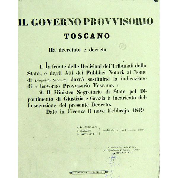Decreto del Governo Provvisorio Toscano il giorno 9 Febbraio 1849