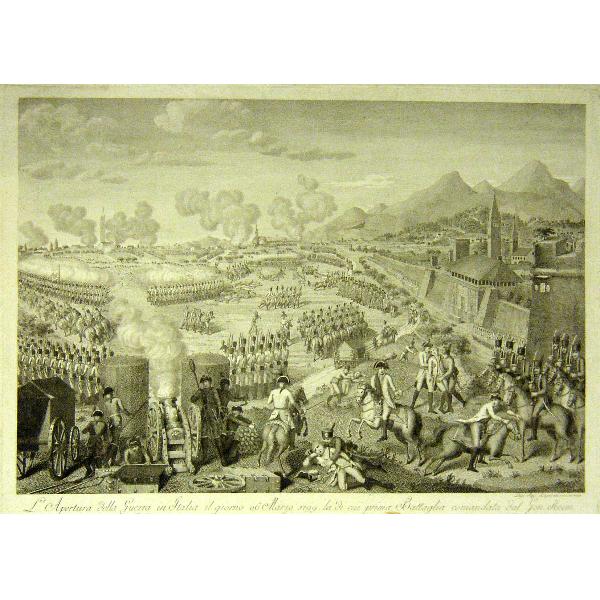 L'apertura della guerra in Italia, il giorno 26 Marzo 1799, la di cui prima battaglia comandata dal Gen. Keim sotoo le mura di Verona si decis edopo 17 ore di continuo fuoco a favore degli austriaci contro i francesi