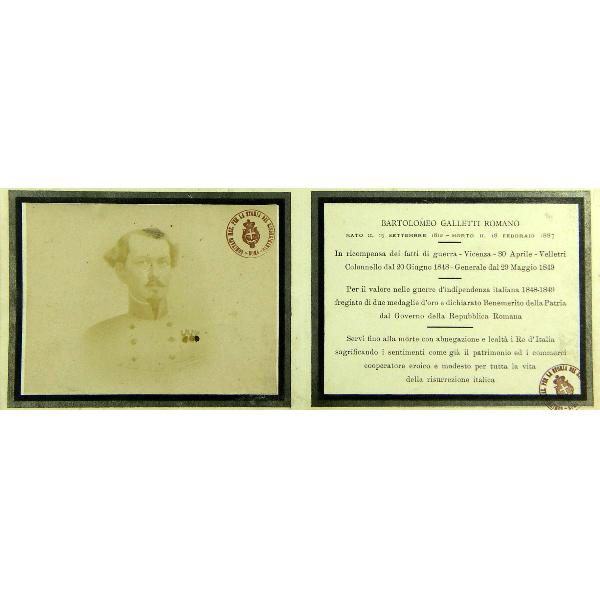 La fotografia misura 7,4x9,6 cm. ed è ritoccata a mano. Sul verso timbro a tampone tondo: Collezioni P. Luzzietti. RIsorgimento