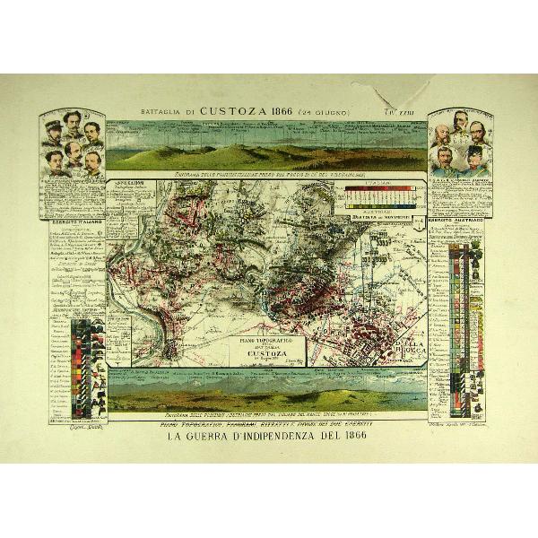 Battaglia di Custoza 1866 (24 giugno). Piano topografico, panorami, ritratti e divise dei due eserciti