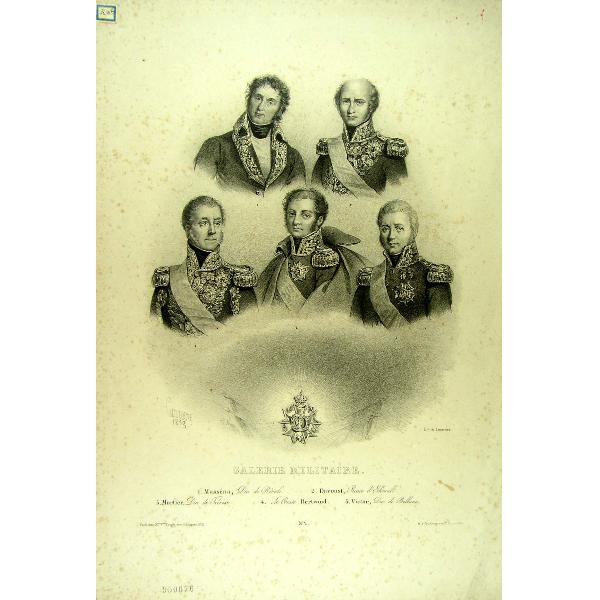 Galerie militaire. 1. Messena, Duc de Rivoli 2. Davoust, Prine d'Eckmull 3. Mortier, Duc de Trévise 4. Le Comte Bertrand 5. Victor, Duc de Bellune
