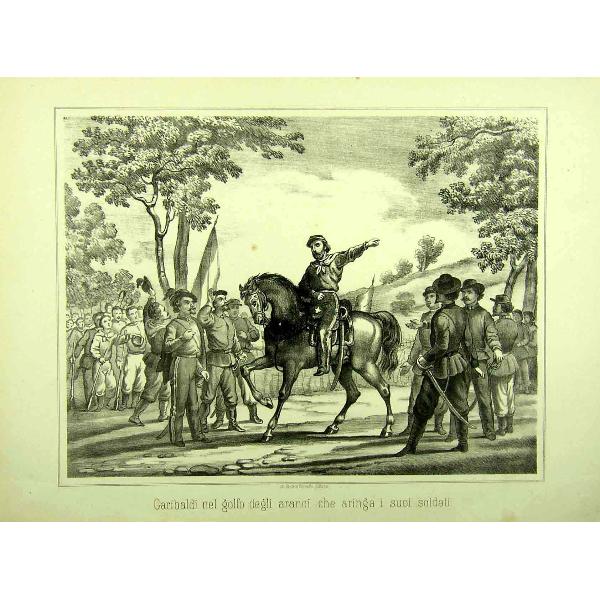 Garibaldi nel Golfo degli Aranci che arringa i suoi soldati