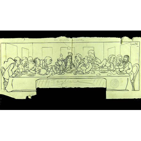 Vignetta satirica sul modello dell'Ultima cena di Leonardo da Vinci