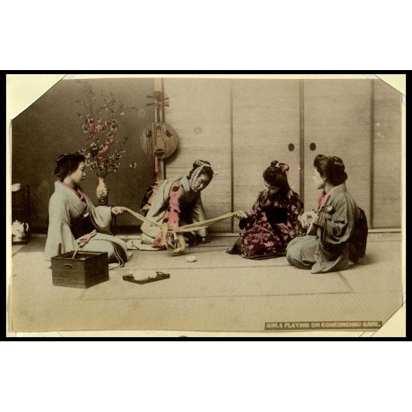 Girls playing on Konkonchiki game Myadzu. Donne che giocano