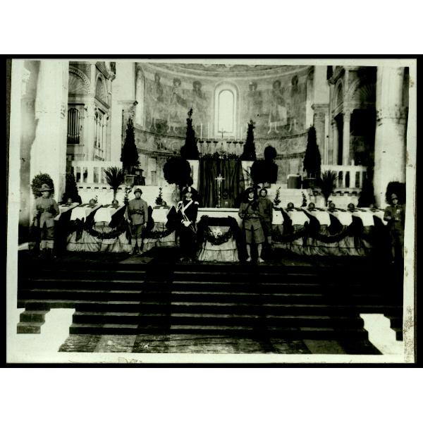 Aquileia. Interno della Basilica con le salme prima della funzione