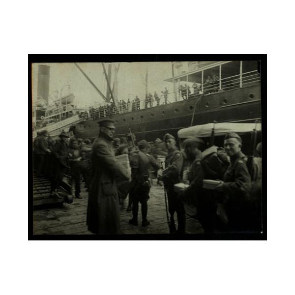 A Genova: militi dell'YMCA che distribuiscono scatole regalo ai soldati americani che s'imbarcano. Simili distribuzioni furono fatte anche ai soldati italiani che ritornavano all'estero.