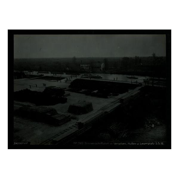 N. 2910 Binnenschifffahrt in Venetien, hafen u. lagerplatz 5.5.18 Impianti di stoccaggio lungo un fiume in Veneto