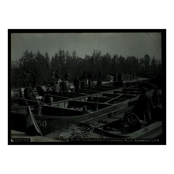 N. 2906 Binnenschifffahrt in Venetien, munition ausladung 4.5.18 Scarico di munizioni lungo un fiume in Veneto