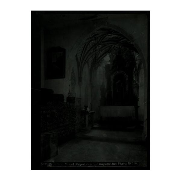 N. 2935 Italien. munit.-depot in einer kapelle bei Plava 19.5.18 Deposito di munizioni in una cappella presso Plava