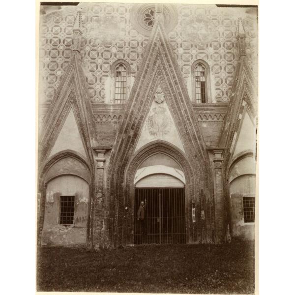 S.ANTONIO RANVERSO - PORTA. VALLE DI SUSA, ABBAZIA DI SANT'ANTONIO DI RANVERSO, CHIESA, PORTALE D'INGRESSO CON UN UOMO AGGRAPPATO ALLA CANCELLATA