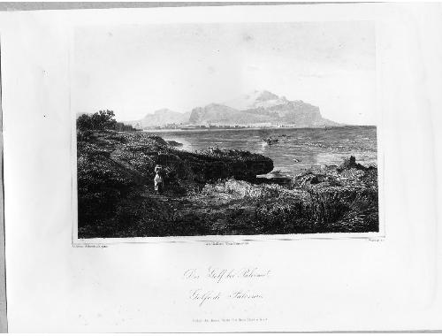 Soggetti profani: soggetti di genere. Vedute: Palermo golfo. Paesaggi: marina. Architetture: città. Figure: donna; pescatori. Oggetti: fagotto; barche. Vegetali: alberi; arbusti