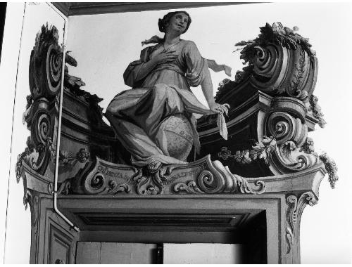 Soprapporta dipinto a monocromo con finta quadratura.. Personificazioni: astronomia. Attributi: (astronomia) globo stellato con zodiaco